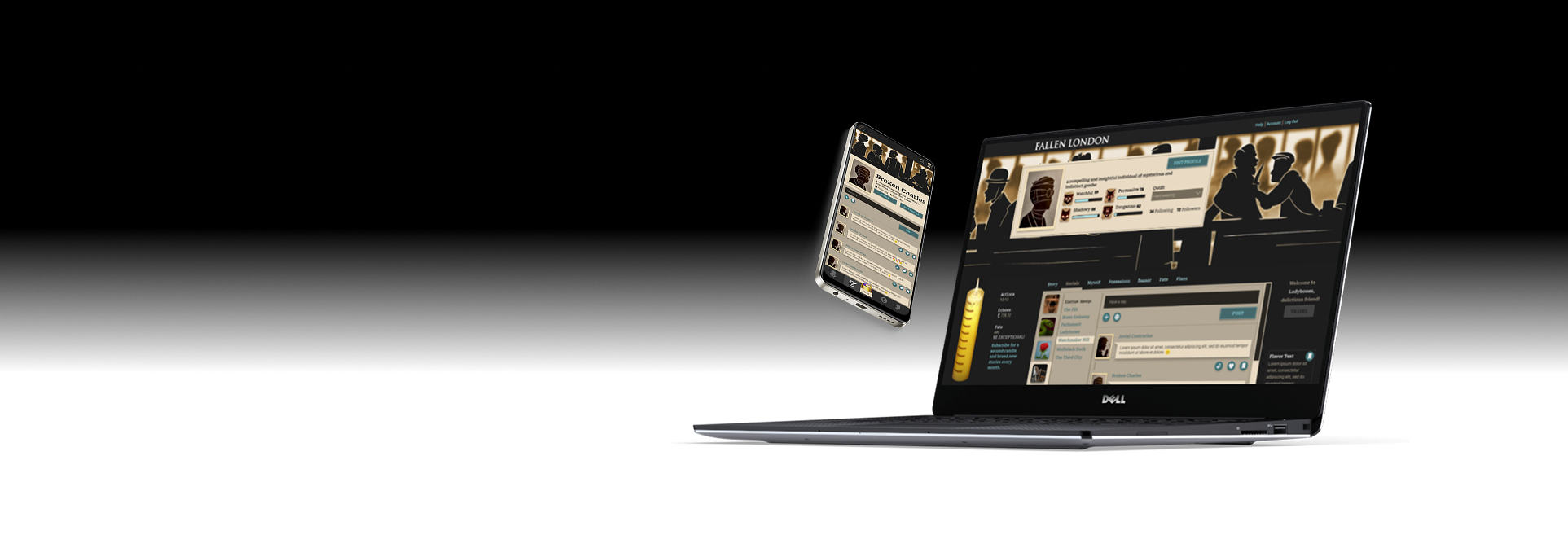 Fallen London is an text-based browser roleplaying game with an avid online following. Players like me enjoy engaging in text-based roleplays featuring our characters engaging in hijinx. I decided it would be fun to imagine social media integration for the game for roleplay purposes. This would be a spiffy opportunity to study social media for UX insights.